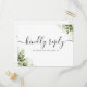 Eine elegante Grünanlage verlasse die RSVP-Karte mit schwarz-weißem Signaturenskript mit schicker Typografie. Auf der Rückseite finden Sie Ihre Details und eine lustige Gesangsanfrage. Entwickelt von Thisisnotme©