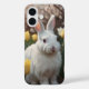 Ein charmantes, von lebendigen Frühlingsblumen umgebenes Hasen in sanften Pastellfarben.