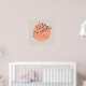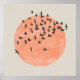 Eine Vogelherde, die vor einer rötlichen Sonne auf beigem Hintergrund geschmückt ist.