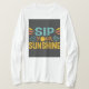 Das Design des T - Shirt zeichnet sich durch den Begriff "Sip Your Sunshine" aus, der in lebhaften, kontrastfarbenen Farbtönen und Set vor einem sonneninspirierten Hintergrund gehalten ist. Die wirbelnden Strahlen und warmen Farbtöne rufen ein Gefühl von Glück und Optimismus hervor, das die Essenz eines sonnigen Tages einfängt. Die spielerische Farbpalette verleiht Energie und Dynamik und macht das Design sowohl auffällig als auch aufregend.
