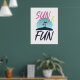 Genießen Sie die sorgenfreie Atmosphäre des Sommers mit diesem lebendigen Poster mit sonniger Grafik und den fröhlichen Worten "Sonne und Spaß". Dieses Poster ist ideal, um eine Touch von Wärme und Spannung in jeden Raum zu bringen. Es ist ideal für alle, die sonnige Tage und gute Zeiten leben