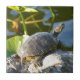 Eine Schildkröte, die auf einem Felsen sich sonnt