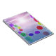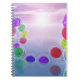 Eine in Vue entworfene 3D-Science Fiction, die einen hellrosa und lavendelfarbenen Sonnenuntergang hinter einer Struktur von mehrfarbigen Kugeln darstellt, wie etwa gigantische Atome, die sich in einem blass blauen Meer spiralförmig ansammeln.