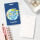 Sonnenastronaut im Weltraum und Cartoon der Erde Ausweis