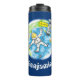 Sonnenastronaut im Weltraum und Cartoon der Erde Thermosbecher