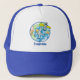 Sonnenastronaut im Weltraum und Cartoon der Erde Truckerkappe