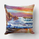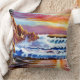 Malerei eines Strandes im Morgengrauen mit abstürzenden Wellen und Möwen gegen einen farbenfrohen rosa und orangen Himmel.