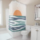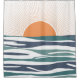Abstrakte Darstellung des Sonnenaufgangs mit orangefarbener Sonne und blauer, weißer und türkisfarbener Dekoration