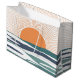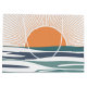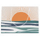 Abstrakte Darstellung des Sonnenaufgangs mit orangefarbener Sonne und blauer, weißer und türkisfarbener Dekoration