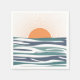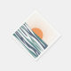 Abstrakte Darstellung des Sonnenaufgangs mit orangefarbener Sonne und blauer, weißer und türkisfarbener Dekoration