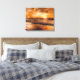 Ein leuchtender Himmel, während die Sonne über das Meer aufgeht. Eine Jahreszeit mit orangefarbenen Farben aus der aufgehenden Sonne.