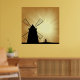 Zwei silberne Windmühlen im Sonnenaufgang. Dieses Design sieht wirklich effektiv aus auf diesem Poster