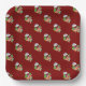 Hier finden Sie viereckige, abgerundete, bordeauxrote Teller für Ihr saisonales Firmenfest oder festliches Familienfest. Ein sonnengebrannter Chili entspannt sich auf einem Sonnenliegen zwischen einem Sonnenschirm, einem kurzen Tannenbaum, der mit einem gelben Stern dekoriert ist, und einigen gepackten Weihnachtsgeschenken. Dieses Urlaubsdesign ist für ein Weihnachtsfest im Dezember oder Juli fertig. Ich zeichnete den lustigen Pfefferkarikaturencharakter mit farbigen Stiften auf Papier und schuf dann ein Muster aus dem Kunstwerk. Daher ist meine Kunst einzigartig und originell.