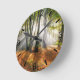 Sonnenbänke im Herbst in einem miessigen Buchenwal Runde Wanduhr