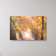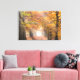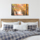 Leinwand Landschaftsbild von Lichtstrahlen von Sonnenbänken durch den Fall der Blätter der Bäume entlang eines Weges durch einen Wald am Morgen Nebel im Herbst. Tolle Dekoration!