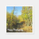 Diese Erntedank-Servietten bieten an einem sonnigen Nachmittag eine helle Waldlandschaft mit einem klaren, blauen Himmel und Bäumen, die im Herbst mit gelben, grünen und goldbraunen Blätter geschmückt sind. Personalisieren Sie sie mit einem Gruß, Ausdruck oder Namen.