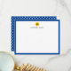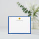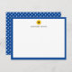 Personalisierte Karte mit blauem Rand und einem kleinen Sonnenblumenkopf. Passen Sie Ihren Namen an. Die Rückseite der flachen Mitteilungskarten weist ein blau-weißes Polka-Punktmuster auf. Sonnenblumennotecard personalisiert mit deinem Namen. Blaue personalisierte Note mit Ihrem Namen und einer Sonnenblume.