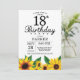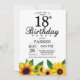 Sonnenblume 18. Geburtstag Einladung. Blume mit Blumen und weißem Hintergrund. Vintages Retro. Frauen zum Geburtstag. 12. 13. 15. 16. 18. 20. 21. 30. 40. 50. 60. 70. 80. 90. 100., jedes Alter. Printable Digital. Für weitere Anpassungen klicken Sie bitte auf die Schaltfläche "Anpassen" und verwenden Sie unser Designwerkzeug, um diese Vorlage zu ändern.