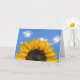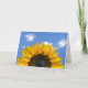 Nah von gelber Sonnenblume am sommerblauen Himmel mit flauschigen weißen Wolken. Kann verwendet werden, um an Sie zu denken oder bald gesund zu werden.