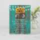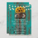 Rustikale Sonnenblumen Wein Barrel String Lichter Land Aquamarin Stall Hochzeit Einladungen.