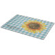 Das reizende Landhaus-Design mit blauen Gingham-kariertem Hintergrund und großer Sonnenblumenblume im Wasser
