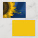 Direkt zu Ihrem Sommersitz oder im Herbst Brautparty oder Heirat Empfang mit der hübschen Sonnenblume auf Blue Wedding Platzkarte. Diese eleganten Hochzeitskortenkarten mit Blumen und Blumen zeichnen sich durch ein nahes Blumenfoto mit einer gelben Sonnenblumenblüte auf blauem Hintergrund aus.