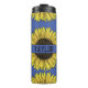 Sonnenblume auf dem Monogramm-Namen des Solid Back Thermosbecher