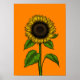 Handgezeichnete Vektor-Abbildung einer Sonnenblume auf orangefarbenem Hintergrund