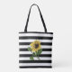 Sonnenblume auf Schwarz-Weiß Streifen Tasche