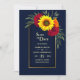 Aktualisieren Sie Ihre Freunde und Lieben mit diesem eleganten marineblauen Blau mit goldfarbener Grenz-Sonnenblume und rote Rose Blumenhochzeit rett-the-date-Karte Ihrer zukünftigen Hochzeit, um sicherzustellen, dass jeder ausreichend informiert wurde, um Vorkehrungen zu treffen, um Ihren besonderen Tag zu besuchen.