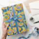 Es ist ein Garten der gelben Sonnenblumen auf einem vibrierenden blauen Hintergrund, der dieses Packpapier verziert. Vervollkommnen Sie für Geschenkverpackung und das Papierin Handarbeit machen einschließlich decoupage. Entworfen durch weltberühmtes Künstler ©Tim Coffey.