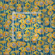 Es ist ein Garten der gelben Sonnenblumen auf einem vibrierenden blauen Hintergrund, der dieses Gewebe verziert. Vervollkommnen Sie für Sommerkleidung und -Wohngestaltung. Entworfen durch weltberühmtes Künstler ©Tim Coffey.
