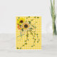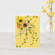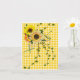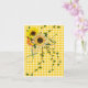 Gelber Blumenstrauß mit Efeu und Ladybugs auf Gingham-Steppdecke für eine leere Notenkarte