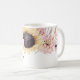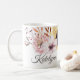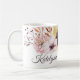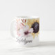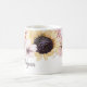 Diese Kaffeemaschine-Tasse zeigt eine Aquarellbilder eines Sonnenblumenstraukets in Gelb, Rosa und Braun. Ihr Name oder ein anderer personalisierter Text wird unten in einem eleganten, dunkelbraunen Skript beschrieben. Geben Sie im Vorlagenfeld Ihren eigenen Namen oder eine andere Nachricht ein.