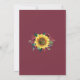 Diese Einladungen für Hochzeiten zeichnen sich durch ein floralfarbenes Aquarell-Design mit Sonnenblumen, bordeauxfarbenen Rose, Blume und Blattwerk aus. Fügen Sie Ihre Initialen dem Glas hinzu und personalisieren Sie die Einladungsworte mit Ihrem eigenen Text. Diese Einladungen sind Teil einer Sammlung, die eine komplette Palette von passenden Hochzeitswaren und anderen Hochzeitsartikeln umfasst. Besuchen Sie unser Geschäft, um die komplette Produktpalette zu sehen, die Sie für Ihren Hochzeitstag personalisieren können.