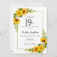 Hübsche gelbe Sonnenblume Blüte 19. Geburtstags Einladung. Gelbe Pfannenbäume und weiße Molkereien vermischen sich mit den Sonnenblumen. Ein rechteckiger goldfarbener Rahmen verleiht ihm ein elegantes Ambiente. Sehr einfach zu anpassen. Dieser Rücken ist weiß mit einem Sonnenblumenstrauß. Das ist perfekt für ein Sommergeburtstag. Dieser Artikel ist Party der Kollektion Gelbe Sonnenblumen und Weißes Sonnenlicht.