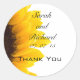 Sonnenblume Vielen Dank, dass Sie Gastgeschenk Hochzeit Stickers. Herrliches Sonnenblumengeschmack auf weißem Hintergrund mit Ihrem Hochzeitstag und Ihren Namen.