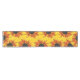 Dieser glänzend farbige dekorative Blumentabellenläufer kennzeichnet schönes Orange, gelb, Rot und die breiten Goldsonnenblumen öffnen sich gegen einen goldenen gelben Hintergrund. Ein was für reizendes Geschenk für Blumengärtner!