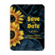 Sonnenblumen gelb rustikale Land Retro denim blauen Jeans Hochzeit speichern das Datum Ankündigung Kühlschrank Magnet. Schönes Blumendesign. Bildrecht Marg Seregelyi Fotografie.