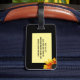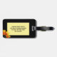 Stellen Sie Ihr Gepäck her, heraus zu stehen auf einem Flughafenkarussell mit einzigartigen Umbauentwürfen! Dieser bunte Gepäckanhänger holt Helligkeit und Beifall zu Ihrer Reiseerfahrung! Drei glänzend farbige Sonnenblumen werden durch das Sonnenlicht belichtet, das durch die Blumenblätter strömt. Die Blumen zeigen eine herrliche Palette des Goldes, des Gelbs, der Orange, des Rotes und des Brauns an. Grün-Blätter und blauer Himmel schließen diese Zusammensetzung der Farbe ab und bilden sich. Die Rückseite hat Ihre ganze persönliche Information sowie eine weitere Sonnenblume. Aller Text kann besonders angefertigt werden.