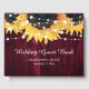 Vervollständigen Sie Ihr weinrosa Hochzeitsfest mit diesem bordeauxroten und sonnenblühenden Gästebuch mit Sonnenblumenblumen und Lichtern auf rustikalem Holzfußboden. Matching-Elemente verfügbar.
