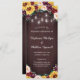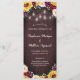 Die Hochzeitsfeiern werden mit Sonnenblumen und bordeauxroten Blume auf einem Holzboden mit Glaskeramikleuchten durchgeführt. Personalisieren Sie sie mit Ihrem Text. Diese Hochzeitsprogramme sind Teil einer Sammlung, die eine Reihe von passenden Hochzeitswaren enthält, die Sie für Ihre Hochzeit personalisieren können. Bitte besuchen Sie unser Geschäft, um das komplette Sortiment zu sehen.