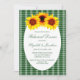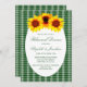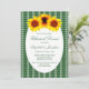 Abendessen mit Sonnenblumen und Probe mit kariertem Hintergrund