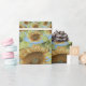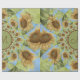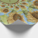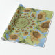 Gelbe Sonnenblume mit blauem Himmelskörper decoupage Packpapier Rolle. Monogramm grüner brauner Kreisbuchstabe Kaleidoskop Blume Geschenkverpackung. Bohemisches abstraktes Muster. Sommerbotanischer Blumenbauernhof . Elegant, modern, cool, schick, rustikal. Bildrecht Marg Seregelyi Fotografie.