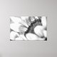 Ein nah-up Foto in Monochrom zeigt eine Sonnenblume. Die Blütenblätter sind hellgrau, an den Spitzen in Weiß abgeblendet und im Vordergrund leicht verschwommen. Die Mitte der Sonnenblume ist dunkel, mit einem strukturierten Muster von Samen und winzigen Strukturen. Der Hintergrund ist sanft verschwommen, wodurch eine flache Feldtiefe entsteht. Das Bild hat ein ruhiges und natürliches Gefühl.