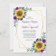 Diese eleganten Einladungen mit einer Aquarellsonnenblume und lila Blumendesign der Rose mit einem vergoldeten geometrischen Rahmen der Imitate. Personalisieren Sie sie mit Ihrem eigenen Text. Besuchen Sie unseren Shop, um die Produktpalette zu sehen, die Sie für Ihre Hochzeit personalisieren können.