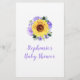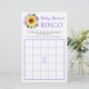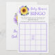 Diese Baby Dusche Bingo Spielkarte verfügt über Aquarellsonnenblumen und lila Rose, Blume mit Blätter. Personalisieren Sie die Rückseite der Karte mit einem Namen. Matching-Produkte verfügbar.