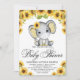 Die kleine Sonnenblume mit Babydusche mit einem hübschen Babyelefant mit Maske auf hübscher Sonnenblume und gelbem Punkt Hintergrund. Diese niedliche Sonnenblumendusche lässt sich einfach an Ihre Veranstaltung anpassen, indem Sie einfach Ihre Veranstaltungsdetails hinzufügen.