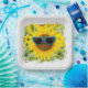 Sonnenblume mit Sonnenbrille auf Holz Pappteller