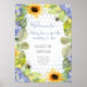 Herzlich willkommen bei der Babydusche "Mommy to Bee". Aquarellbilder mit Hummeln und einem staubigen, blauen Wabenmuster-Hintergrund. Sonnenblumen, Gänseblumen und blauen Hydrangea-Blume. Die Kunst wurde von Audrey Jeanne Roberts, einer international anerkannten Künstlerin und Designerin, urheberrechtlich geschützt.